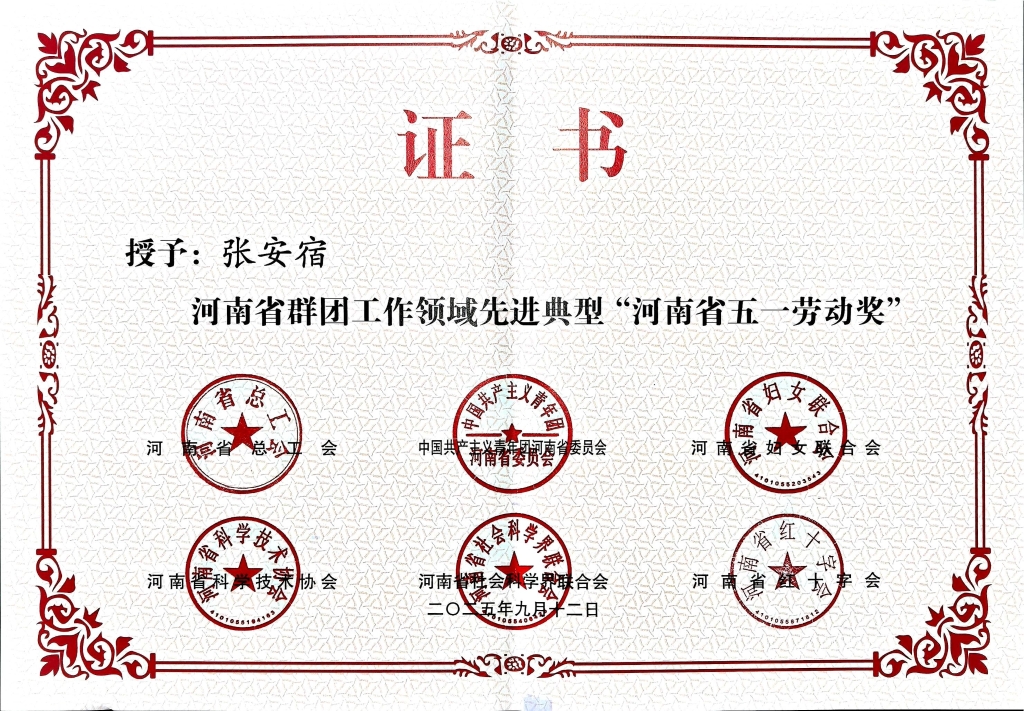 河南省五一劳动奖是省总工会设立的荣誉奖项,用于表彰在全省经济建设、政治建设、文化建设等方面作出突出贡献的先进集体和个人,旨在弘扬劳模精神、劳动精神、工匠精神,激发职工群众的劳动热情和创造活力。