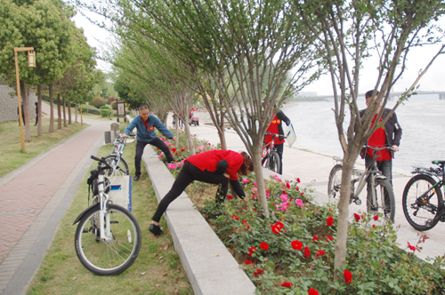 上午8:30,22人组成的志愿服务队伍,骑自行车从公司综合办公楼前出发,经中州路、北京路、卧龙路、滨河路,一路骑行至南阳白河湿地公园。