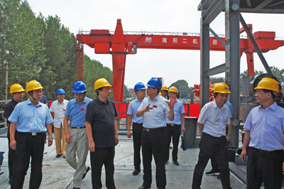 上午11时,在集团公司领导陪同下,霍好胜一行首先深入到总装分厂、第二试验场等生产现场,实地调研公司生产经营情况,并现场考察了公司正在组装的新型智能化修井机和5000米轨道钻机等产品项目。