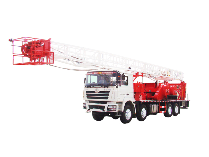 小修修井机采用重载二类底盘,具有良好的机动性、越野性。井架、绞车、传动箱、司钻箱、液压绞车等辅助设备安装在副车架上,整机结构紧凑,重量轻。